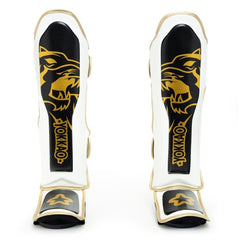 YOKKAO shin guards like the Matrix or Institution rarely slip due to non-slip interiors, stress-resistant Velcro straps, and dual elastic foot/ankle bands that lock in place during checks or clinches in Muay Thai. The Flames model adds reinforced foot guards for extra stability; however, on larger calves, they may shift if not sized up.